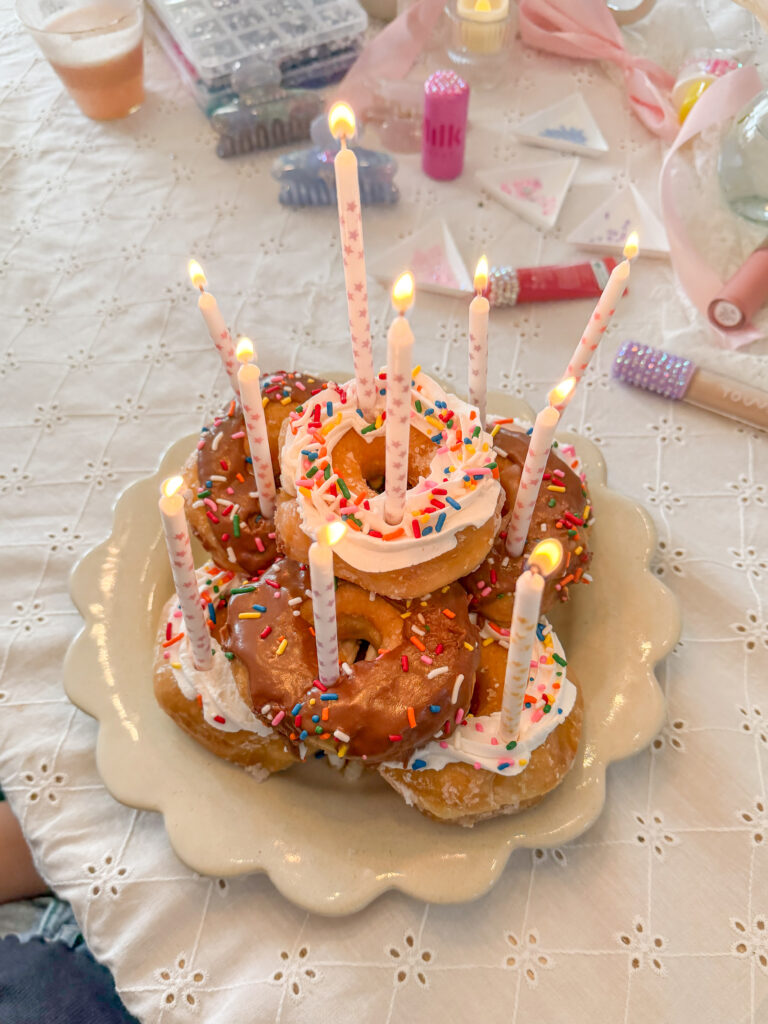 By Ava’s request, I picked up the ice cream cake at Dairy Queen and added my own edible glitter. She also requested a donut stack cake for her friend party which was fun & has a story – IYKYK : )